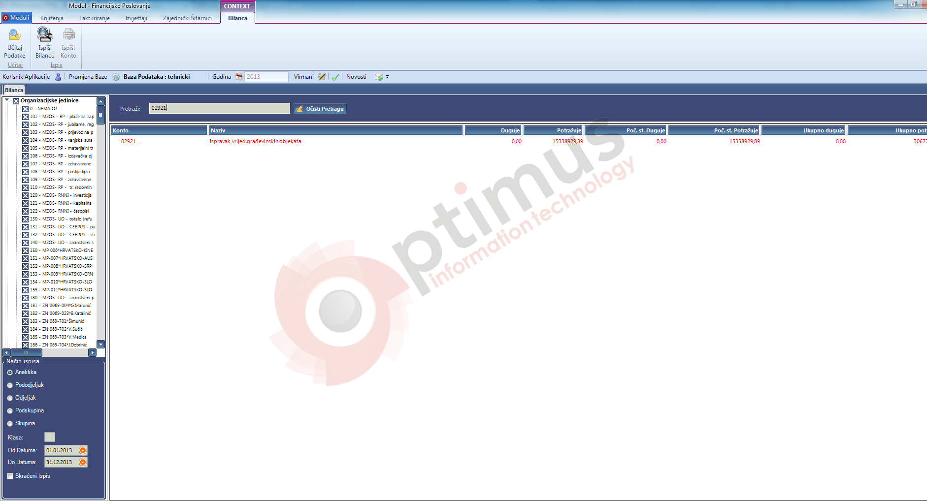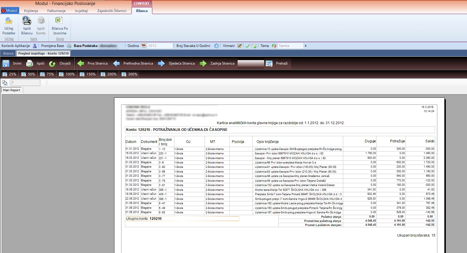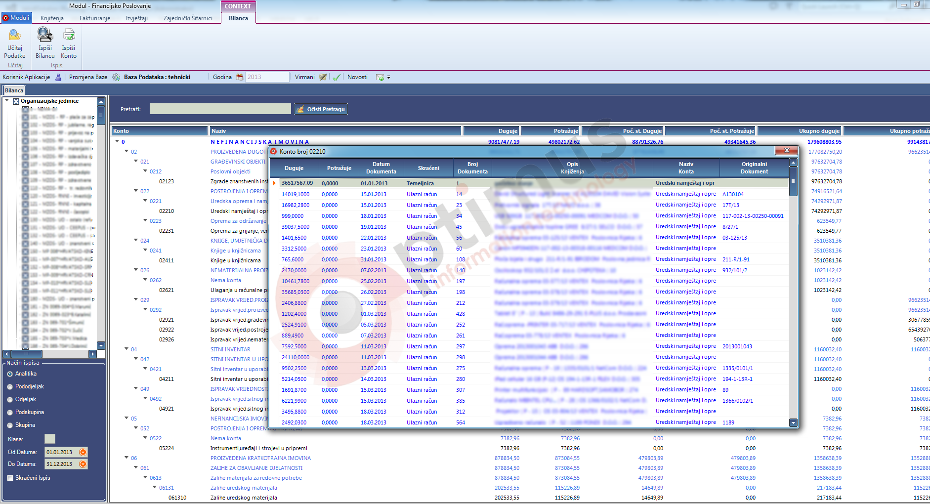 Kod bilance (Financijsko Poslovanje - Izvještaji - Bilanca) dodali smo mogućnost pregleda bilance te direktnog pregleda određenog konta dvoklikom na isti, što se lijepo vidi na slici ispod. Također, klikom na Ispiši Konto možemo ispisati odabrani konto.