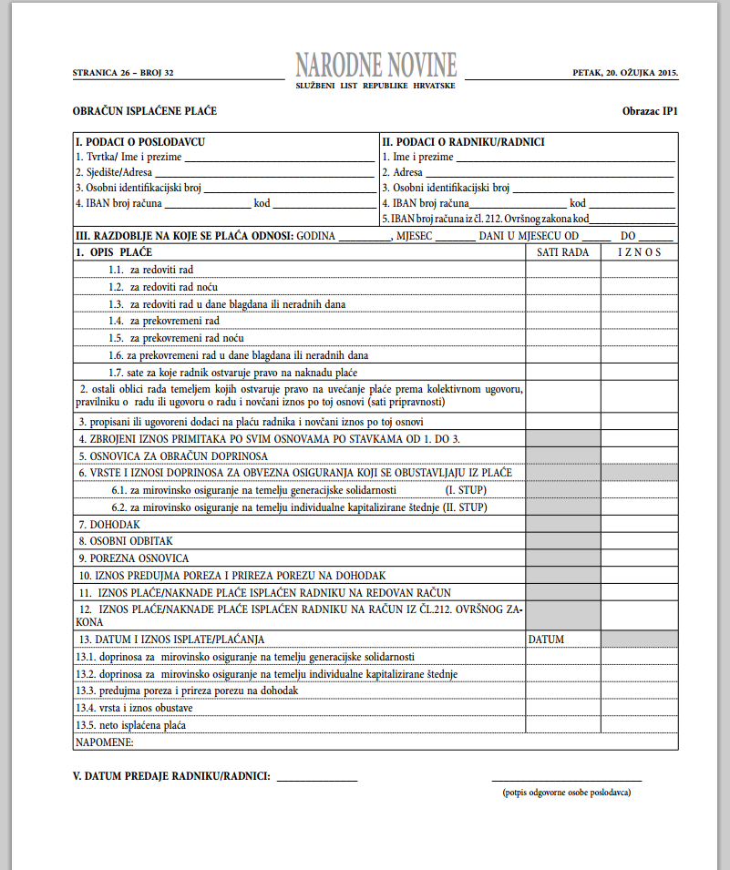 - Obrazac NP1 - Obračun neisplaćene plaće