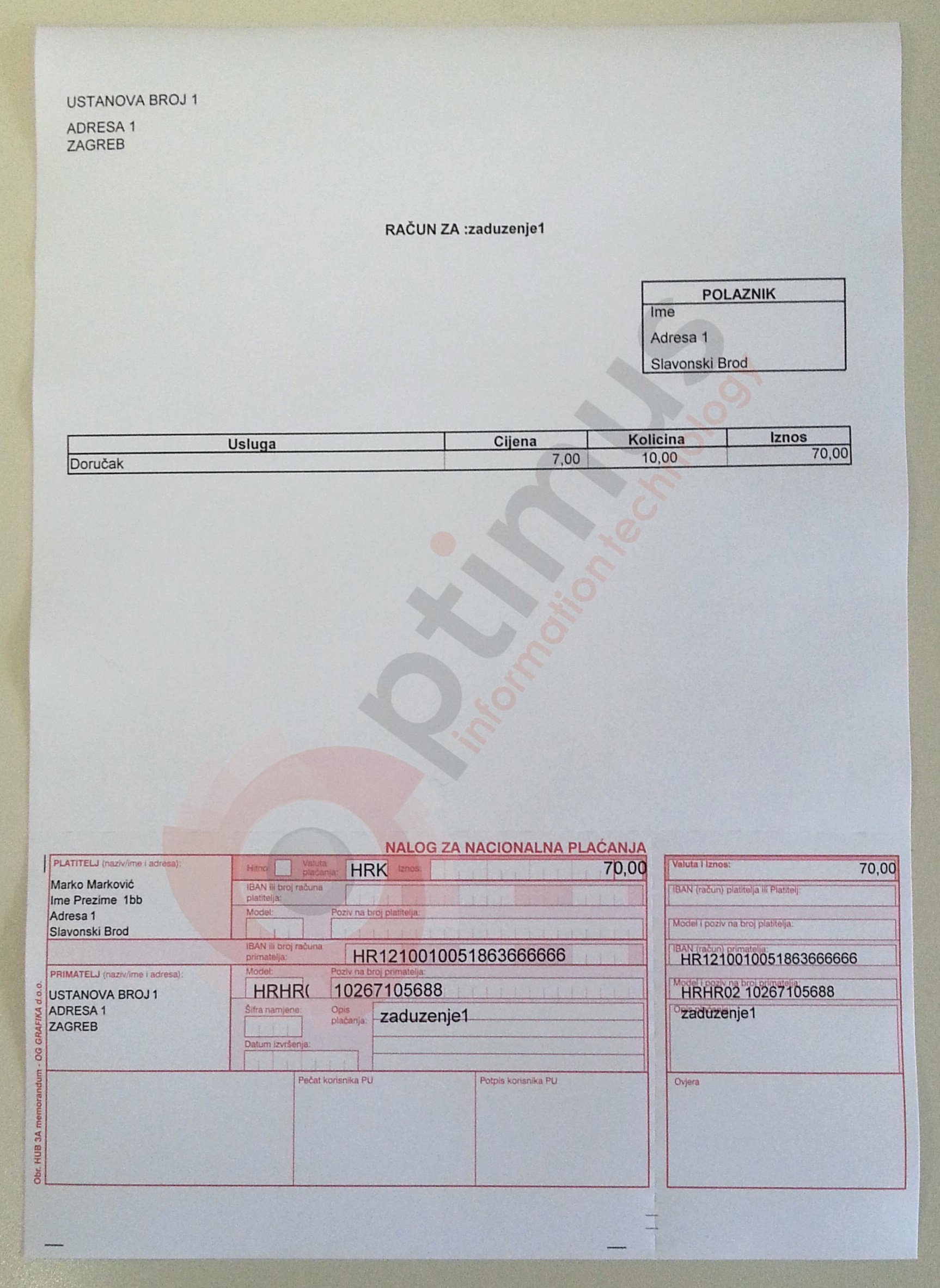 Željeli bi istaknuti mogućnost da uz ispisa virmana možete ispisati i račun na predefiniranom obrascu kao na slici ispod.Ukoliko želite naručiti obrasce za ispis istog, slobodno nas kontaktirajte.