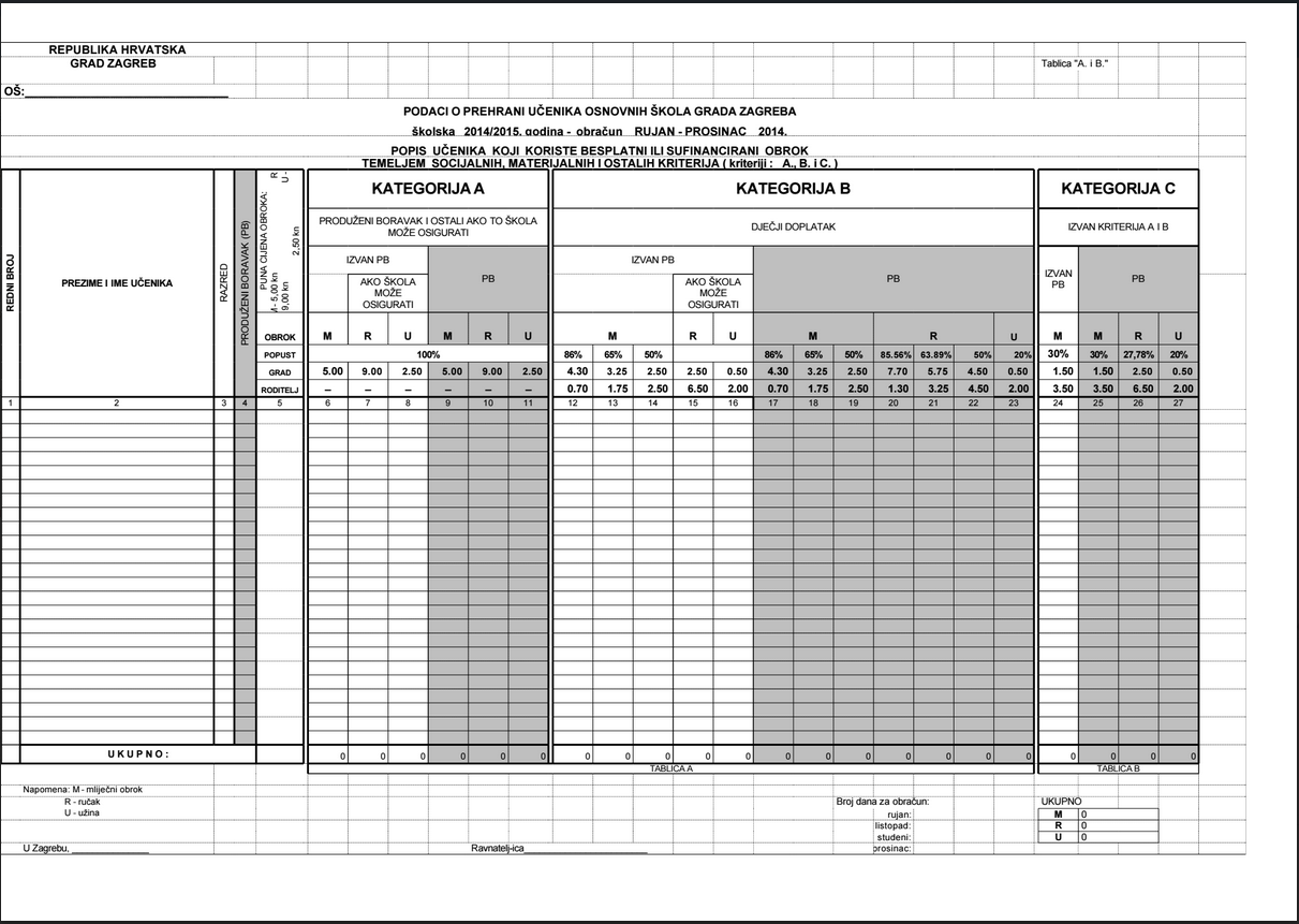 OVDJE možete pronaći upute za kreiranje tablice za sufinanciranje prehrane.
